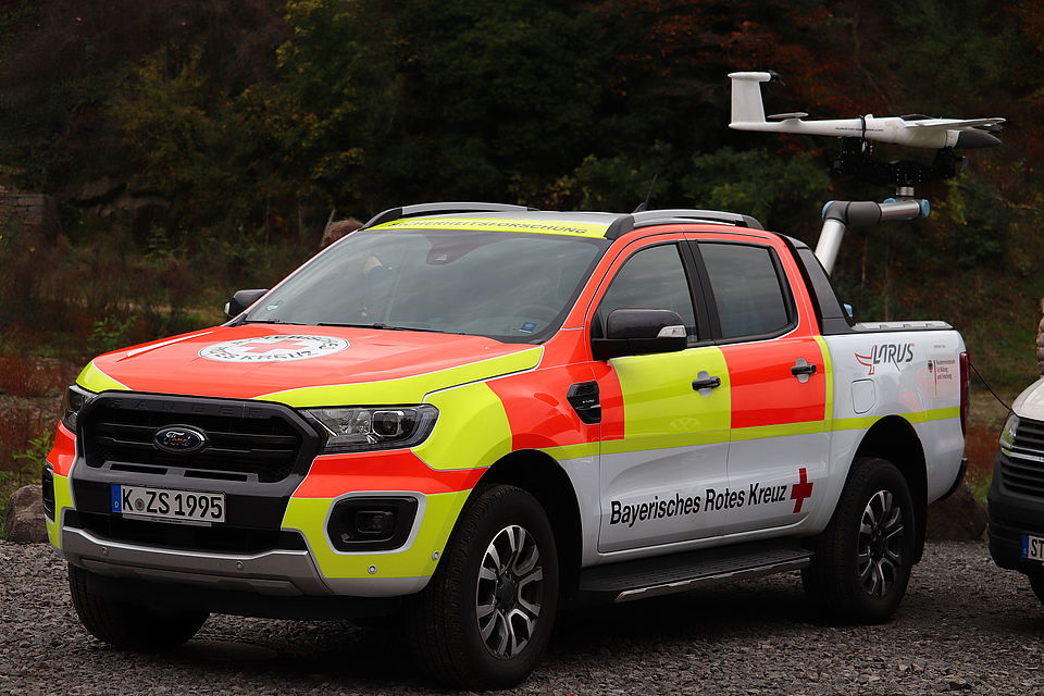 Signalanlage | 3 LED- Kennleuchten Hänsch Comet LED (Prototypen: Hänsch Comet S), Frontkennleuchten Hänsch Sputnik nano SL, akustische Signalanlage Hänsch 624 mit Stadt-, Land- und elektronischem Kompressorsignal, Betätigung über Bedienfeld am Armaturenbrett, Automatische Fahrlichteinschaltung bei „Blaulicht ein“ |