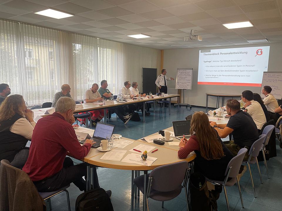 Am Montag, den 13.10.2025 trafen sich 20 Teilnehmende aus ganz Deutschland von Feuerwehr und Rettungsdienst zu einem Praxisworkshop im Bezirksverband Unterfranken in Würzburg. Das Ziel des Workshops war, mit Führungspersonen aus dem aktiven Einsatzdienst verschiedene in den vorhergehenden Arbeitspaketen erarbeitete Fragestellungen zu diskutieren. Zunächst wurde kurz das Projekt vorgestellt, danach zu den jeweiligen Fragestellungen übergeleitet, die in Gruppenarbeit bearbeitet und anschließend im Plenum diskutiert wurden. Neben der Personalentwicklung war vor allem das Thema „Meldewege“ im Fokus. Hier wurden verschiedenen Ansätze und weitere Handlungsfelder identifiziert, die in folgenden Projekttreffen weiterbearbeitet und am Ende zu Handlungsempfehlungen ausformuliert werden sollen. Am späten Nachmittag demonstrierte die Wasserwacht mit zwei Booten aus Würzburg und Veitshöchheim die Leistungsfähigkeit der Wasserrettung auf dem Main.