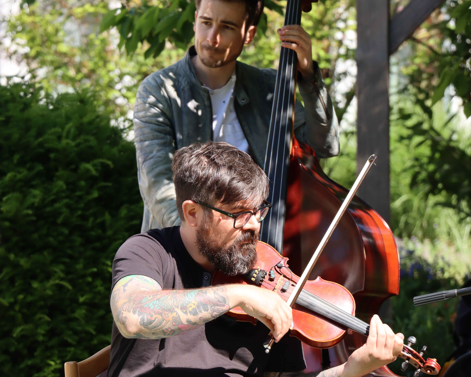 Ende Mai haben Bewohnerinnen und Bewohner, sowie das Personal des BRK-Seniorenwohnsitzes Hofberg zu den Gipsy-Klängen von „Django 3000“ gefeiert. Das rund 90-minütige Konzert konnte aufgrund des guten Wetters unter freiem Himmel stattfinden und bescherte allen Beteiligten einen unvergesslichen Vormittag - die Spannung der Bewohner war groß und bereits als die ersten Töne erklangen, zeigte sich, dass das Publikum in bester Feierlaune war.